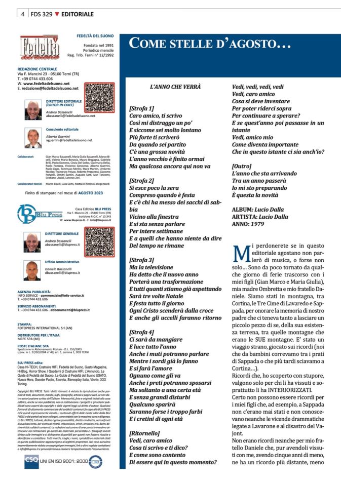 FEDELTÀ DEL SUONO #329 – AGOSTO 2023 – COME STELLE D’AGOSTO…